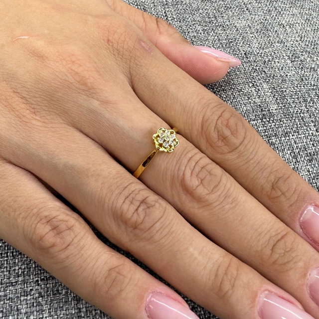 Anel Flor Micro Zircônias Banhado em Ouro 18k