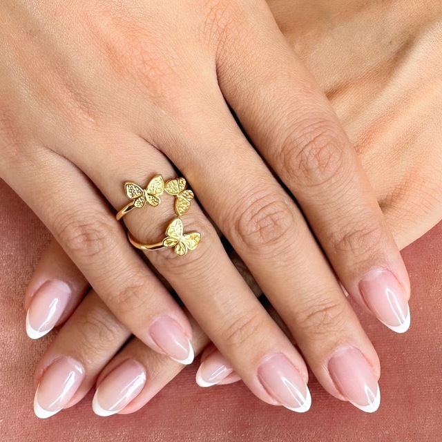 Anel Regulável Borboletas Banhado em Ouro 18k