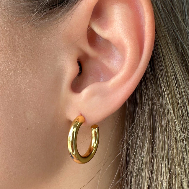 Brinco Argola Média Tubo Lisa Banhado em Ouro 18k