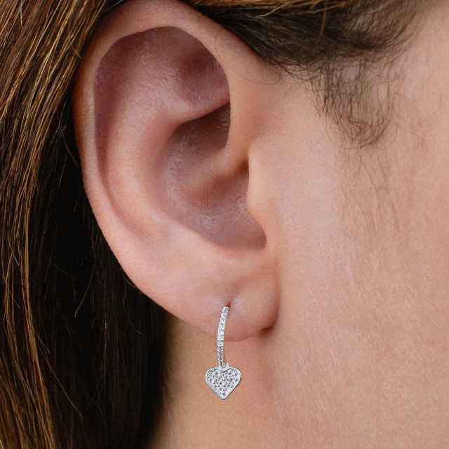 Brinco Argolinha de Coração Cravejada em Prata 925