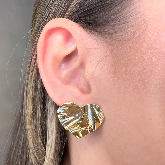 Brinco Martelado Coração Banhado em Ouro 18k